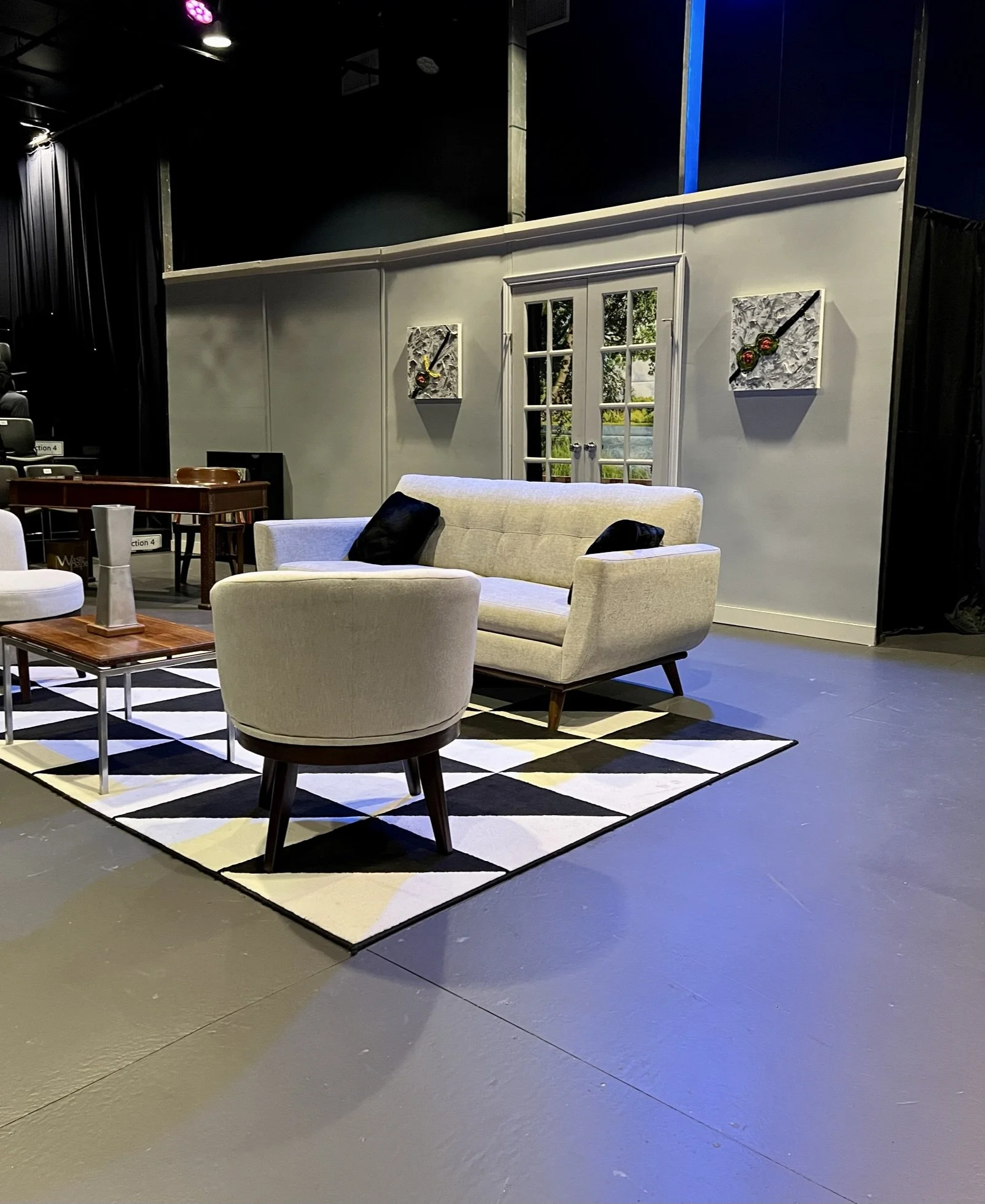 Rover DramaWorks needed a different type of star for their production of Spirit Level at the Cox Playhouse in Downtown Plano. Two of my paintings were key players in the first scene of Spirit Level at Cox Playhouse in Downtown Plano. Not only did I have paintings in the production, but also filled the lobby with some of my work.