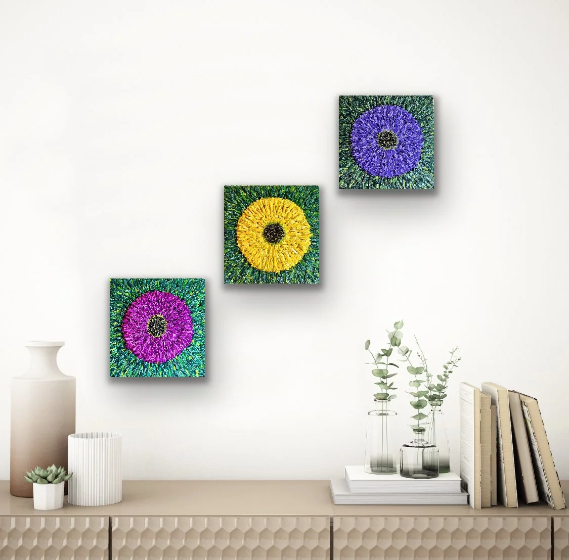 Zinnias are full of color and life, but the meaning of a Zinnia is friendship, endurance, daily remembrance, and goodness. We all need more of these things in our lives. My Zinnia’s were inspired by an exceptionally large one bloom painting I saw in Sausalito when I first started my art journey. I came across that original image recently and compared it to my evolution of these paintings. Rosee, Sunnie and Violet have taken just over a year to create - there are about fifteen layers of oil paint in the foliage and countless additional layers in the bloom itself. I lost track of the number of paint tubes I used on these beauties! They will be ready for delivery August 1, 2023. Time to plant some more seeds…